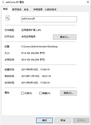 2、复制文件“adsCore.dll”到系统目录下