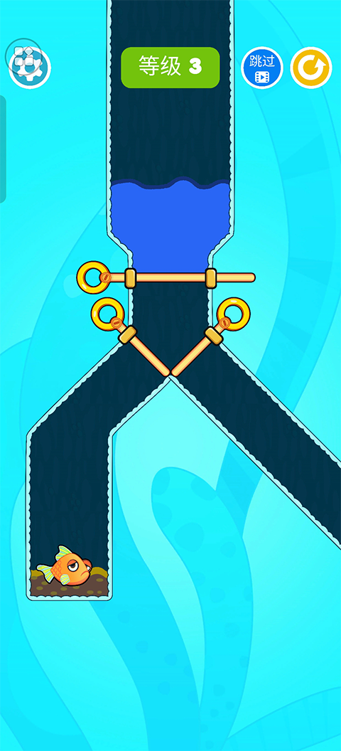 一、目标:拉动别针,让水流安全抵达鱼缸,拯救所有小鱼