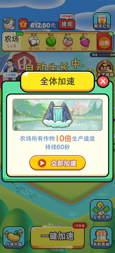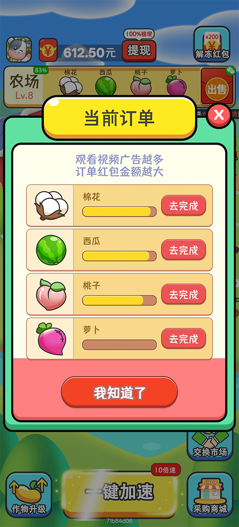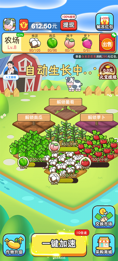 通过完成农场订单,收获的作物可直接兑换为红包奖励,并支持提现,让您的每一份耕耘都转化为实际回报。