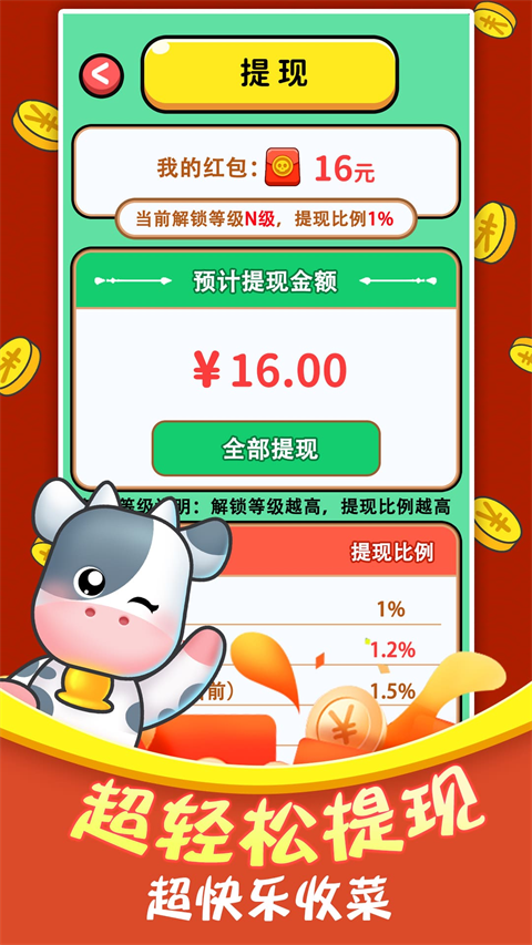 3、【易操作】游戏提供快捷养殖操作,玩家点一点就能赚取红包。
