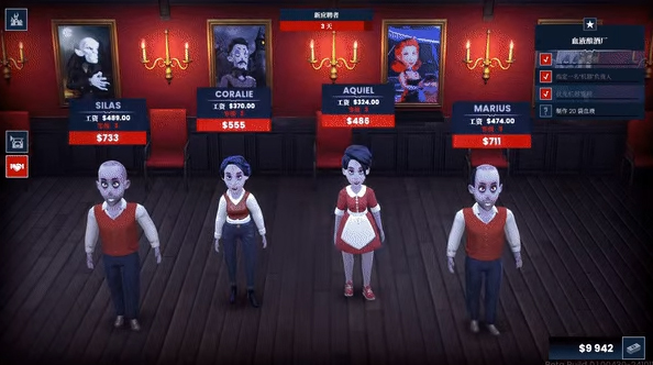 既要升级酒吧设备(比如血液离心机、伪装装饰),又要管理吸血鬼员工:有的负责调酒,有的处理“尸体危机”(对,被吸干的人类得偷偷埋掉!)。还得讨好吸血鬼长老!比如妩媚的索菲喜欢奢华装修,而弗拉基米尔只认实力——讨好他们能解锁隐藏资源。