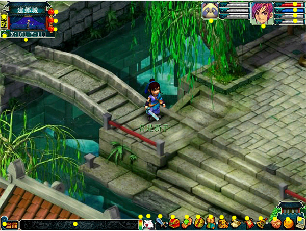 在游戏画面中,玩家所控制的角色位于屏幕的中央附近。需要移动位置时,将鼠标停在想要走到的地方,点一下鼠标左键即可。也可以压下鼠标左键停留两秒钟,角色就会跟随鼠标的指向而移动。