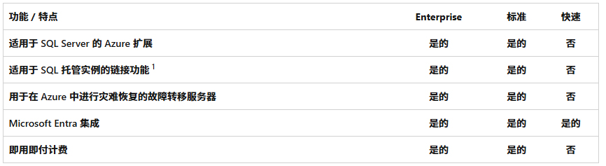 Enterprise版本适用于 SQL Server 的 Azure 扩展,适用于 SQL 托管实例的链接功能,用于在 Azure 中进行灾难恢复的故障转移服务器等。