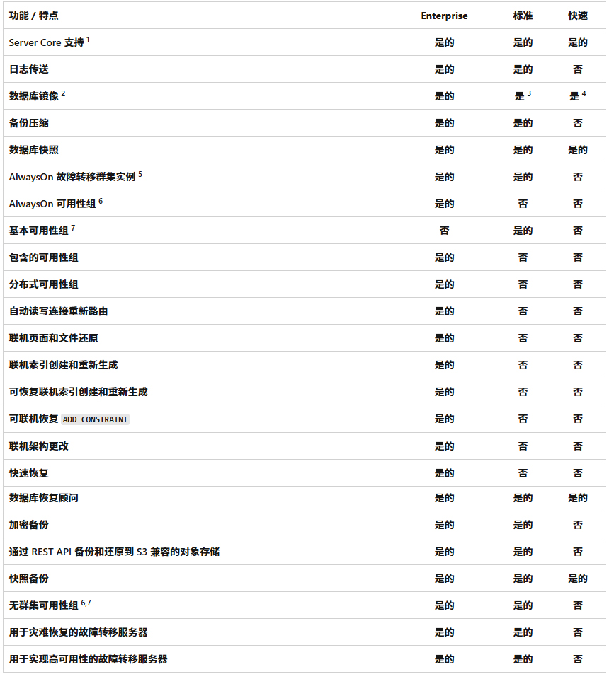 sql server 2025企业开发版、标准开发版和评估版功能区别简介: