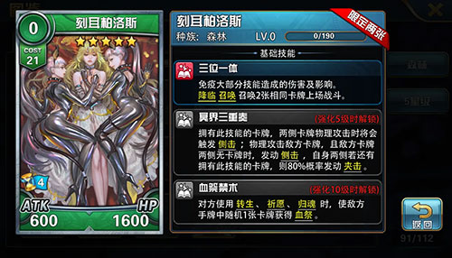 1技能,为敌方2张卡牌添加死契敌方加速2。看上去有点绕对吧?实际上这个技能既能在一定程度上防止现今主流阻碍(没错爆弹说的就是你)带来的干扰,也能在自动状态下配合己方降临技能当号角使用。就算是在回合内被普通地触发,也和加速2带来的提速效果无异。最理想化的状况是在自动状态下上场附加敌方卡牌后用己方降临敌方号角拉下后同时配合己方降临技能直接打死被附加卡牌触发技能起到相当于降临号角的作用。(我是谁?我在哪?我在说什么?)