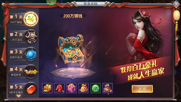 3、登录豪礼,每日登入即可领取大量道具礼包。