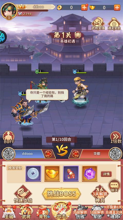 3、有了角色后就可以前往关卡挑战。