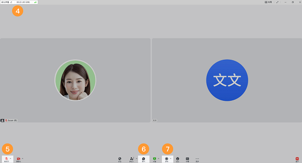 会中发言:打开麦克风发言,也可以点击 聊天,发送文字