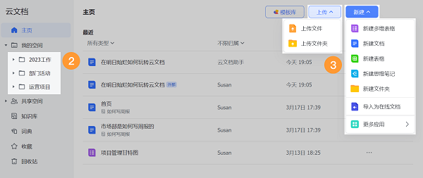 创建更多:在云文档主页创建表格、多维表格、思维笔记或文件夹