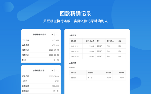 销售人员可随时记录客户和合同信息,管理者可即时查看和监控团队的合同签约、合同回款和合同执行状况;分类管理企业客户资源,提升销售工作效率。