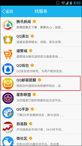 2、然后可以看到自己的“QQ邮箱提醒”点击进入。