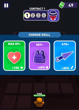 击杀判定还算友好,只要敌人在你位移路径上蹭到一下,都是一击必杀。而主角能吃好几下伤害,人少的时候正面刚也完全没问题,加了速度或生命buff之后更是如此。因为没有无伤过关奖励之类,在不减少游戏乐趣前提下,正面刚不失为缩短时间的一个好办法。