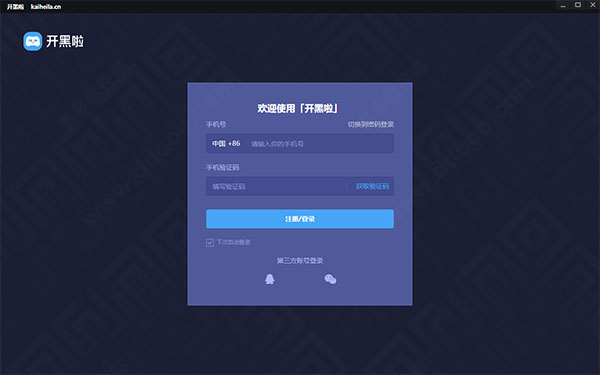 3、安装完成后即可运行开黑啦,接着登陆账号,支持手机号码、QQ、微信三种方式登录,无账号的直接登录即可注册;