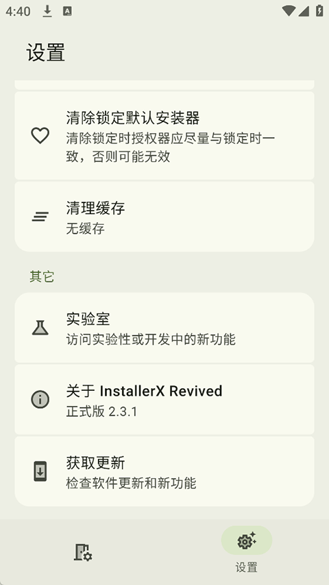 2、为了点击 APK 文件时自动弹出InstallerX Revived而不是系统安装器,你需要在InstallerX Revived设置界面中进行安装器设置