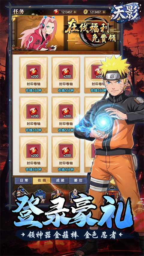 2、登录豪礼,领神器金箍棒,金将忍者!
