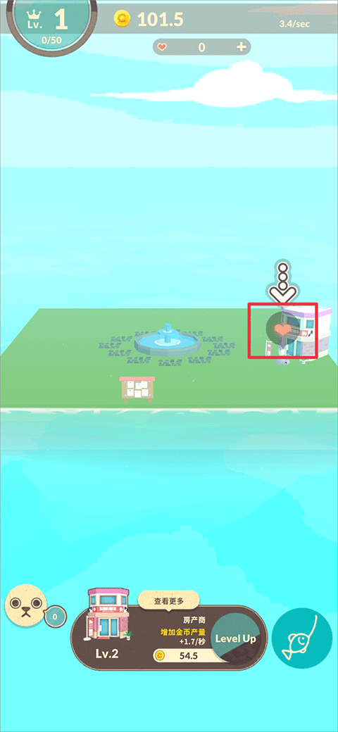1、赚取金币和心,将空无一物的小岛建设起来!