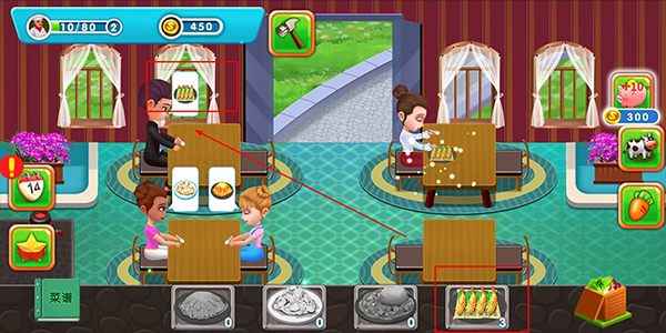 5、制作完成后,把料理拖动给顾客,即可获得金币(金币可以用来购买种子,家禽用来升级)