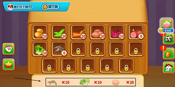 3、卡通趣味的游戏画风,你的农场需要更多的农作物种子,并且很多美食都需要特定的材料。