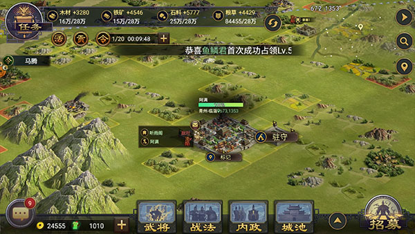 但有以下几点需要注意:⑴右侧资源类建筑如伐木场等,在升至5级之后停止继续升级;民居与仓库在升至7级之后停止继续升级;左侧战争科技建筑如铁壁营等,在升至3级之后停止继续升级。原因是,上述建筑之后的升级不会触发资源返还类的任务,在前期资源紧缺的时候,不建议继续升级。⑵在完成建筑任务的同时,积极出征土地,提升武将等级,完成主线任务。⑶尽量等领到1个建筑任务奖励之后,再开始进行下一个建筑任务。切忌花费资源建造了很多建筑,但都未达到够触发任务奖励的等级!