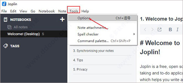 为了防止数据存储平台(比如OneDrive)查看我们的笔记内容,Joplin支持笔记加密功能;