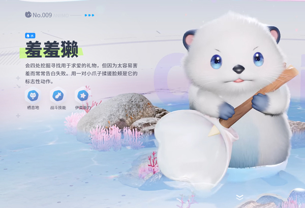 会四处挖掘寻找用于求爱的礼物,但因为太容易害羞而常常告白失败。用一对小爪子揉搓脸颊是它的标志性动作。