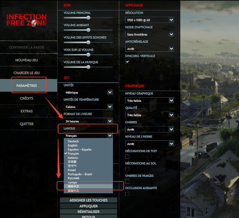 无感染区电脑版怎么设置中文?