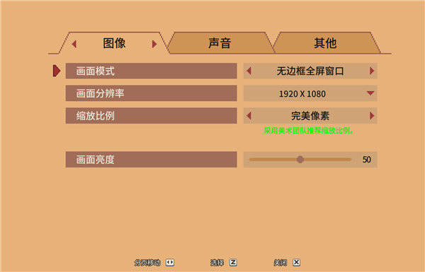 4、键盘的方向键控制上下左右,z是确定键,esc是返回键,点击设置,在图像设置中用户可自定义画面模式、分辨率、比例、亮度等;