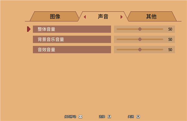 5、在声音选项中,可调整游戏的整体音量、背景音和音效音量;