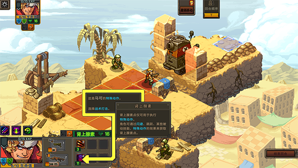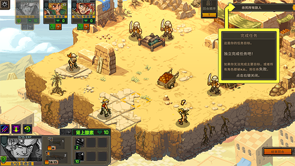 合金弹头战略版是经典合金弹头系列推出的全新玩法的特殊版本。在游戏内不在是玩家时刻操控角色来进行战斗了,而是采用经典动作玩法和战术深度相互融合出的战棋回合制玩法。玩家需要通过自己的策略来合理的利用角色特点,利用游戏内场景特色来更好的击败敌人,从而来取得游戏的胜利。
