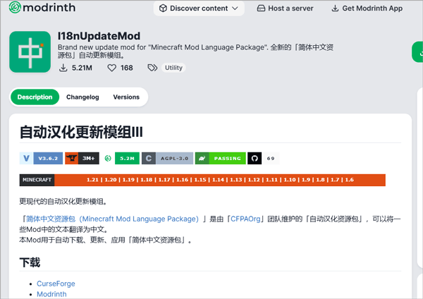 2、对于模组的汉化玩法,用户可以在modrinth中专门下载汉化、中文的模组进行游玩