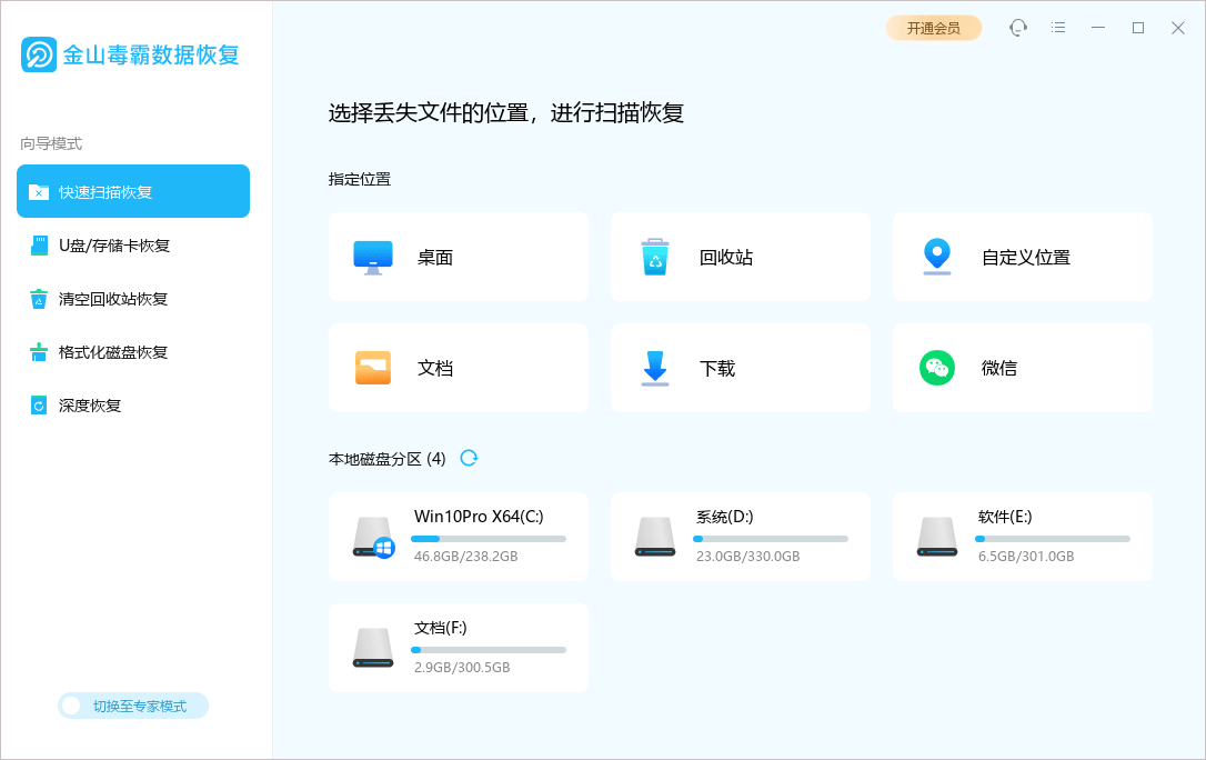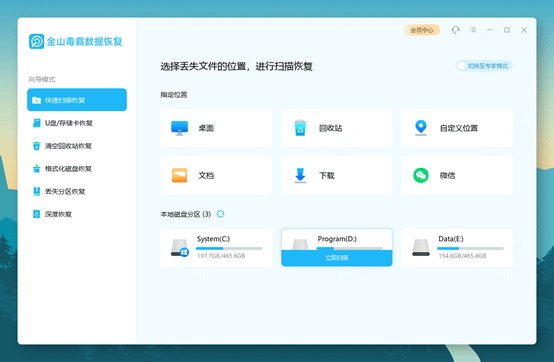 金山毒霸数据恢复如何恢复丢失的文件?