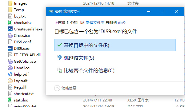 3、将破解补丁“DIS9.exe”复制到软件根目录下,选择替换操作