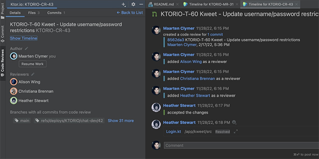 IntelliJ IDEA 集成了智能代码协作平台 JetBrains Space。在 Space 中托管或镜像项目,通过与 IDE 的原生集成增强 Git 托管。直接从 IntelliJ IDEA 浏览项目、克隆仓库,以及审查代码。专注于编写代码,让 Space 创建功能分支并自动将提交与合并请求链接到问题。