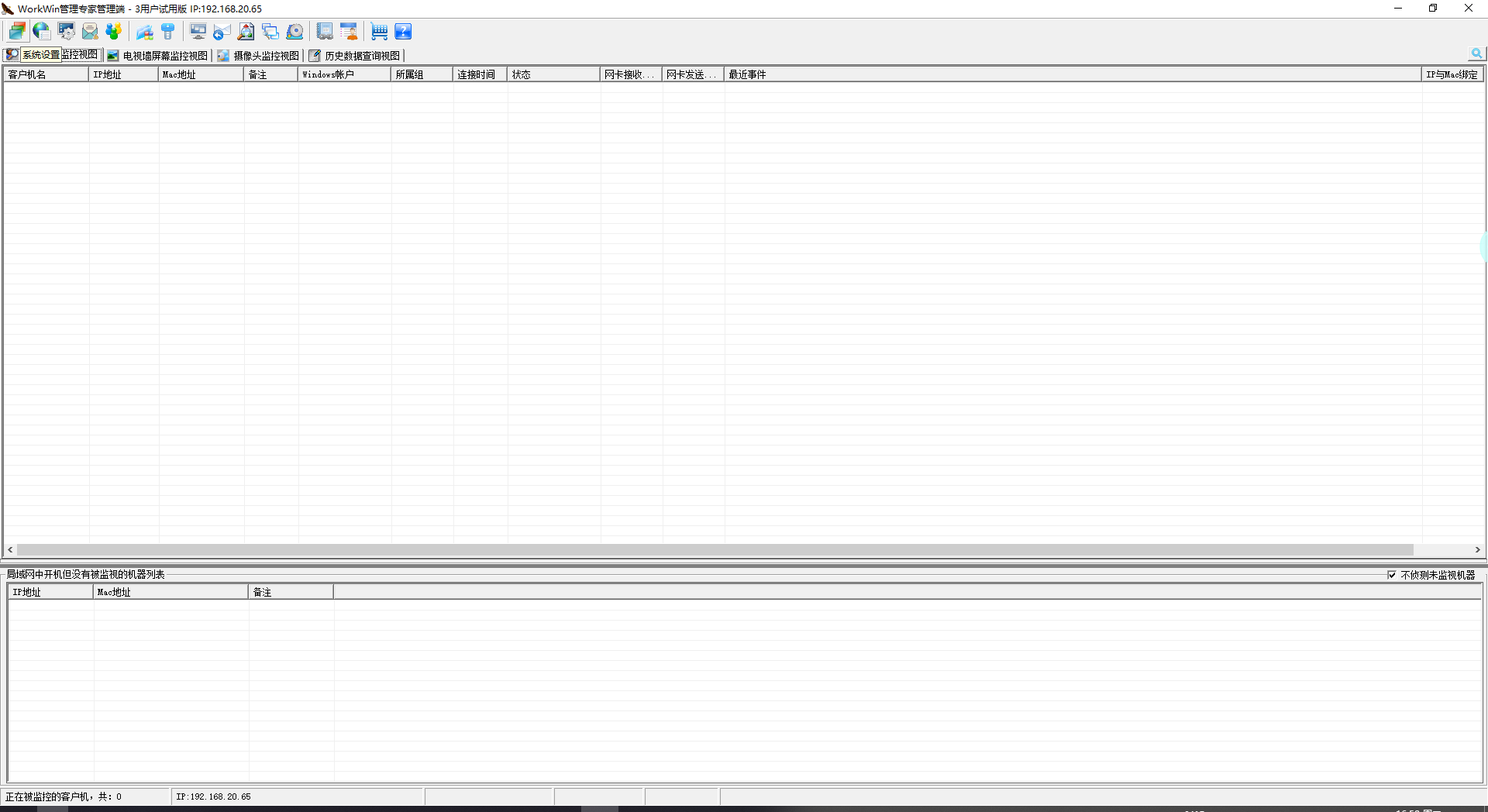 WorkWin管理端是同类软件里面的绿色版,解压缩就能用,所有的一切都是优化过的,对机器的配置无特殊要求,能稳定运行在从Windows XP到Windows 7、Windows 10、Windows 11、Windows Server 2016/2019等各个版本的Windows系统上。少于100台的监控无需考虑管理端机器配置问题。如果您需要监控的机器大于100台,推荐4GB以上的内存,近3年配置的主流CPU都可轻松胜任。对计算机硬件无任何要求。对局域网结构,是否是VPN 、交换机、路由器型号或有无交换机路由器等无任何要求。纯软件架构,无需增加任何硬件设备。