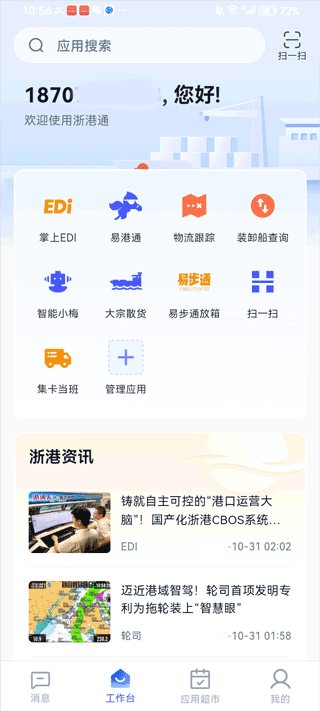浙港通app是浙江海港集团与宁波舟山港集团联合打造的一站式港口服务移动平台,专为港口从业人员及贸易企业设计。用户在浙港通app中通过手机号注册后,即可通过统一认证体系访问集团旗下报关报检、货物跟踪、费用结算等核心业务功能,实现“掌上办理”全流程。