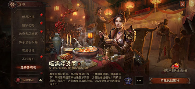 春来仙塞迎新年,挑战魔神破旧岁!“魔神喜刷刷:暗黑年货节”限时活动携京东快递贺岁而至,为冒险者送福啦!莉莉丝周边、京东卡,为你的年货加码年味,2026全年为你送福送运上门!