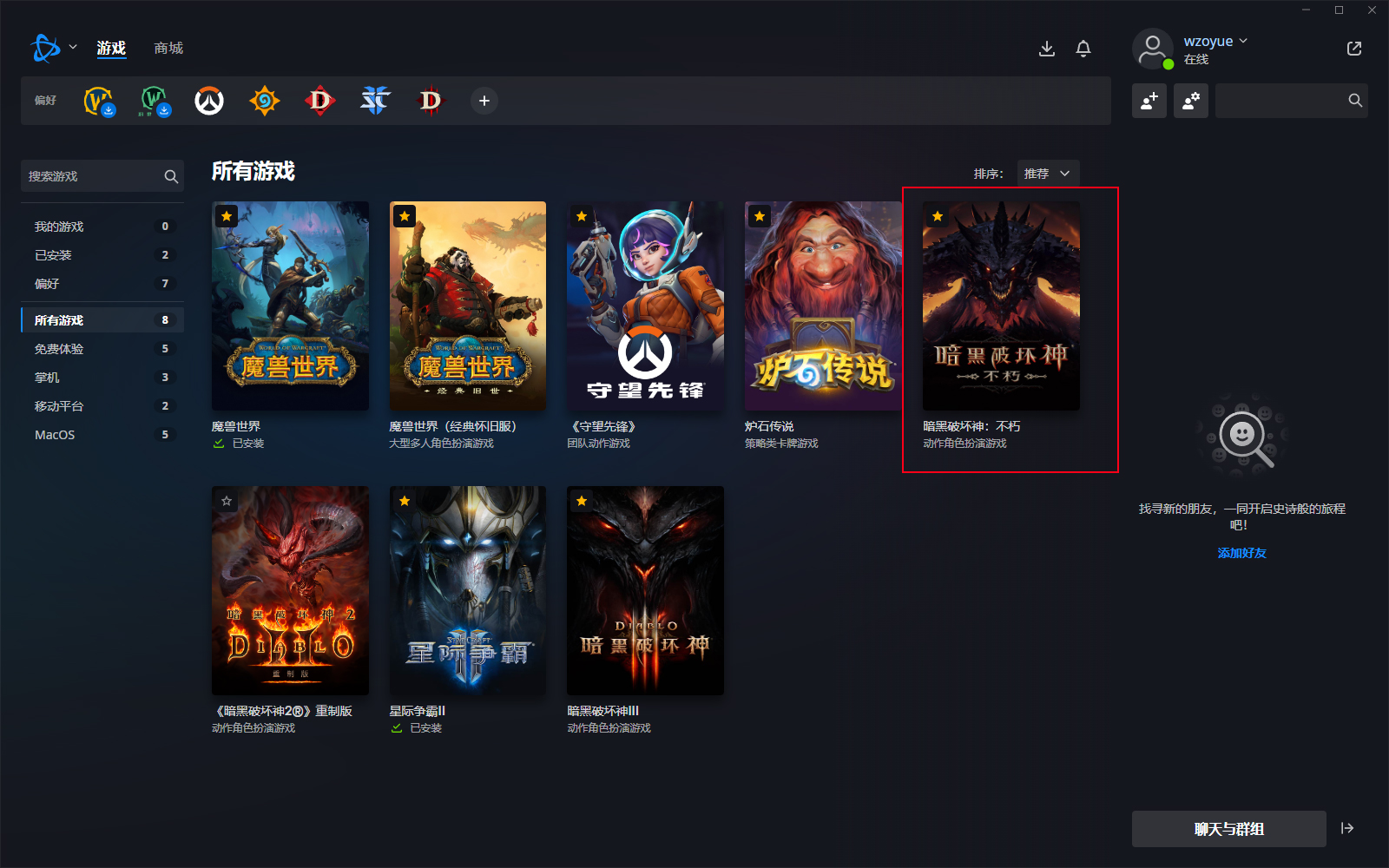 3、成功登陆后,找到暗黑破坏神不朽游戏;