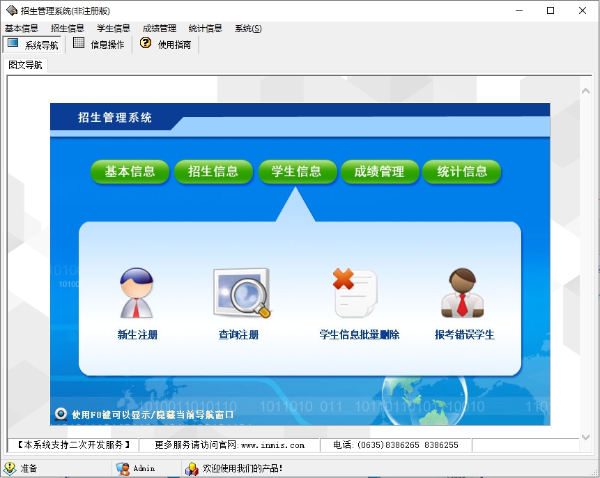 新生注册、查询注册、学生信息批量删除、报考错误学生。