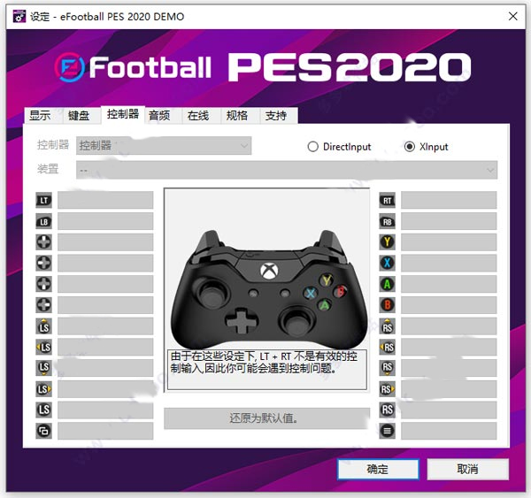 3、按键操作很重要,用户可以在键盘或控制器上根据自己的习惯设置,默认实况足球2020按键如下:
