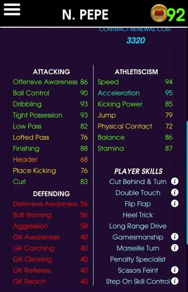 1995年5月29日出生于法国芒特拉若利,现效力于英格兰足球超级联赛的阿森纳足球俱乐部。2019年8月1日,阿森纳官方宣布,从里尔签下科特迪瓦飞翼尼古拉斯·佩佩,根据BBC报道佩佩的转会费达到7200万英镑,创造了阿森纳队史新的转会费纪录。在PES2020中他也将达到总评92的高分,速度和加速也高达94、95。