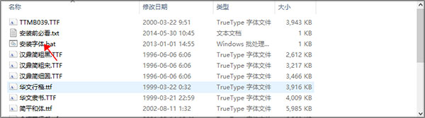 2、在压缩包中点击你需要用的字体即可开始使用。