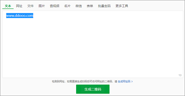 1、草料二维码生成器可以根据不同的内容可制作不同样式的二维码。支持包括:文本、网站、名片、文件、图片……,这里我们以文本来示例说明: