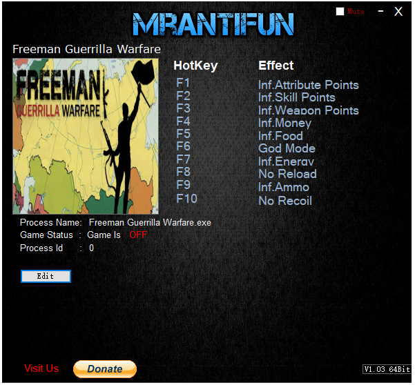 自由人游击战争修改器是专为同名游戏《自由人游击战争》而开发的辅助软件,完全免费,拥有无限属性点、无限技能点、无限武器点、无限金钱、无限食物、无限弹药等十项修改功能,可以帮助玩家在游戏中更好的通关游戏,请适当的修改,以免失去游戏本身的乐趣。另外小编追加了自由人游击战争十七项修改器,完全免费,快下载体验吧。