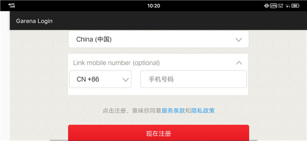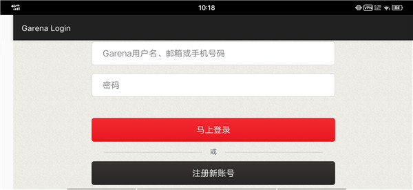 1、下载好游戏后,点击进入,有账号可直接登录,注册账号点击左边的【Garena登入】,这个比较方便一些,