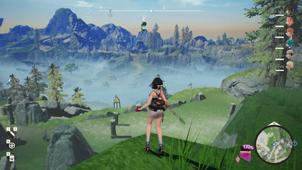 但是,回到前面的话题——或许正因为可探索的元素太多了,才不得不加快节奏。举例来说,优米雅,她的造型和性格继承了系列一贯的风格,但“先天条件”远超任何一位前辈。从一开场她就可以贴墙三段跳(这招有些超纲),用子弹击打崖壁上的机关和素材,用简易调和的道具开启滑索和梯子,也可以随时随地制作简单的回复品。也就是说,你从一开始就差不多可以为所欲为了,哪怕不慎从悬崖上跌下去也不会有什么损伤。