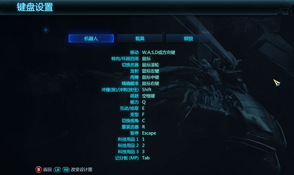 变形金刚暗焰崛起的操作按键分为机器人、载具和钢锁三种,每一种几乎一模一样,只是多个几个不同的按键而已,而机器人是按键中最全最多的,小编已经将其具体罗列出来了,玩家在游戏前,熟记操作按键将在游戏时事半功倍。其中E拾取,F变身,鼠标滚轮切换武器用得最多。