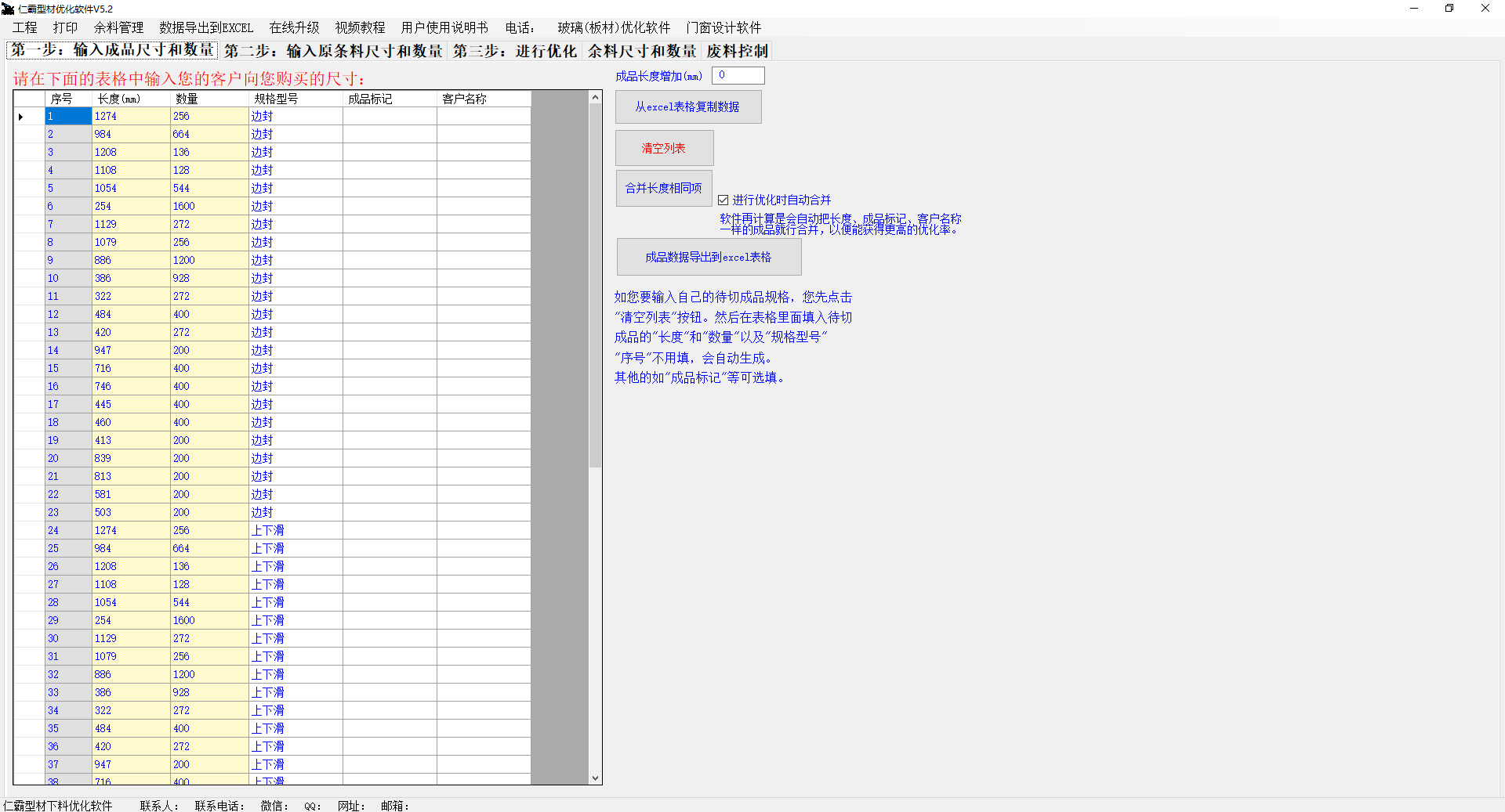 4、优化时考虑每次切割的损耗量及下料尺寸与窗号的相对应。