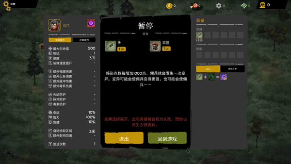 - 打造变异佣兵,解锁独特技能或负面效果
