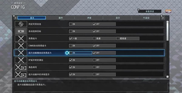 7、进入设定界面,会有很多的动画选项,基本都是战斗/界面动画是否播出之类的,是否跳过动画可以在此处设置。