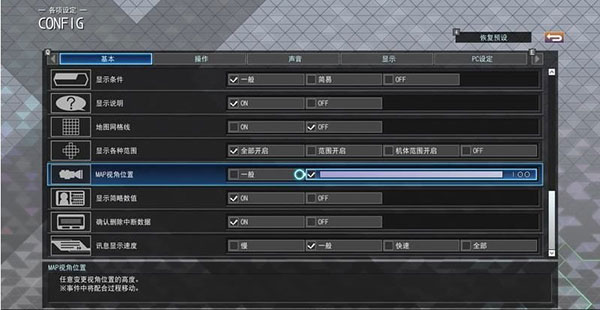 8、设置战斗的视角也是在设定中设置,下滑找到MAP视角位置,数值设置越大显示范围越广,其余的设置也可以在界面中找到。